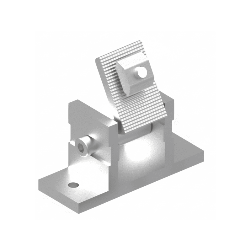 Accesorio para sistema de montaje fotovoltaico. Utilizado para unir el riel de montaje a la superficie de instalación.